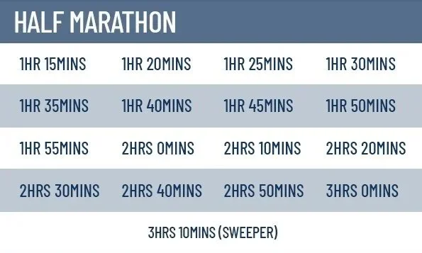 Please note: All pace makers will guide each pace group off net-time (Net time is taken from when you physically cross the start line after the gun).